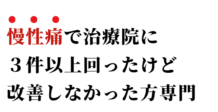 • 接骨院・マッサージ・鍼にも行ってみたがその時良くなるだけで、根本的に改善しない。